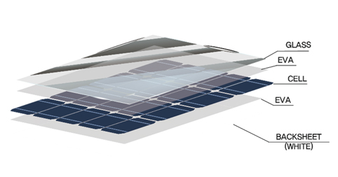 일반모듈의 앞면은 저철분강화유리를 사용하며, 뒷면은 모듈의 종류에 따라 Backsheet 또는 Glass를 사용